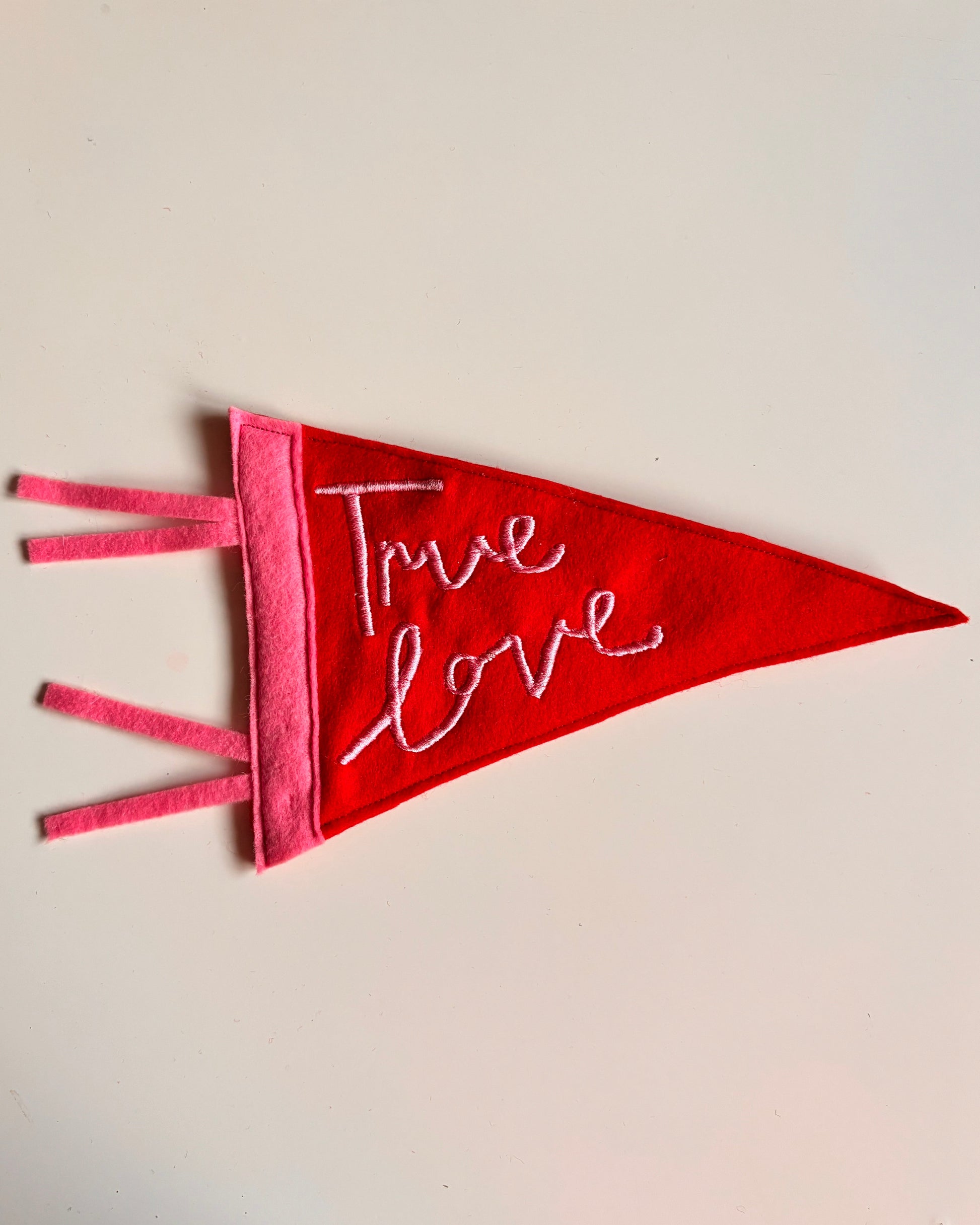 Produced in very small batches, these pennants are intended as keepsake pieces — perfect for Valentine’s gifting, playful home decor, or adding a handmade touch to your space all year round.