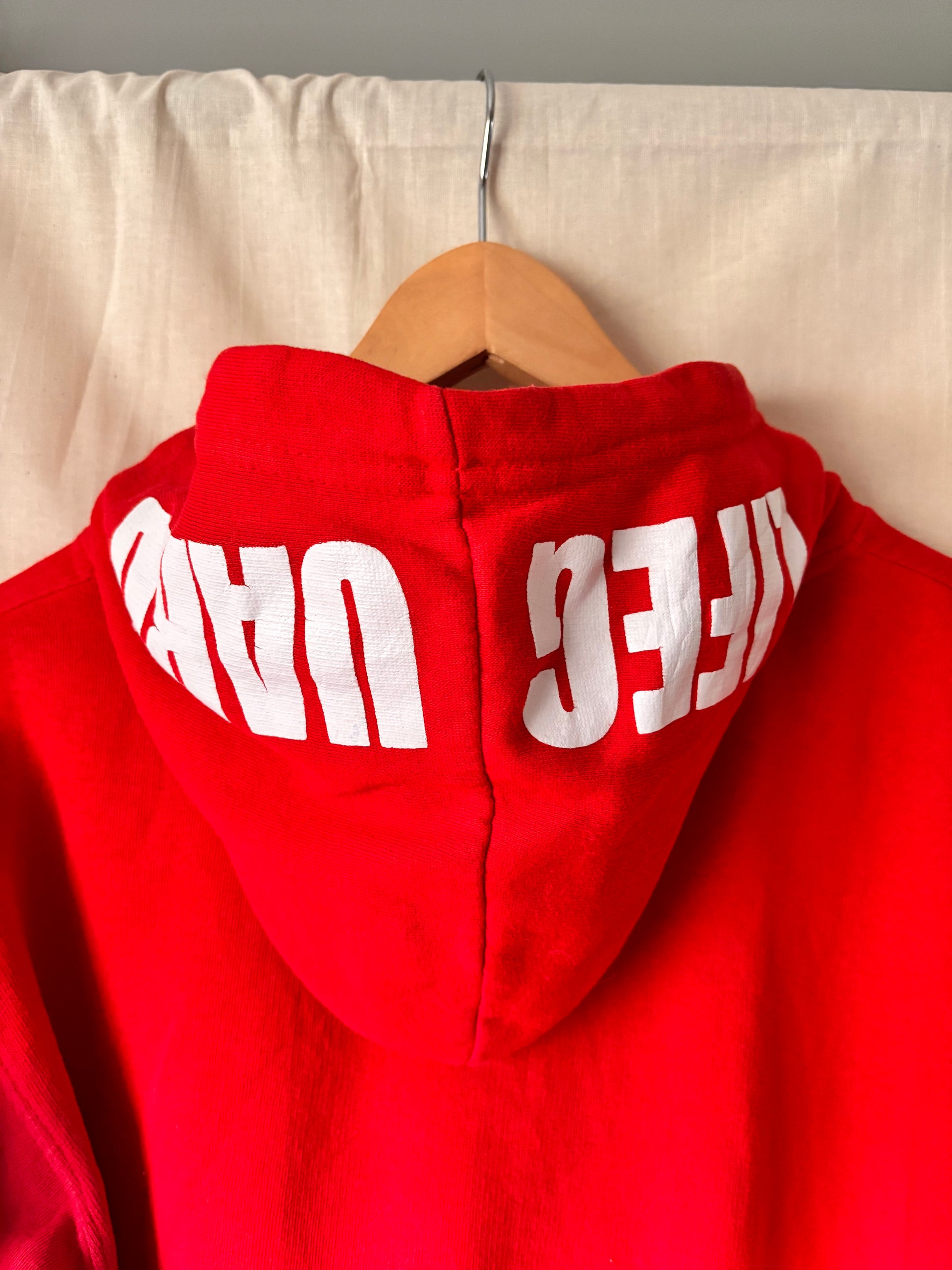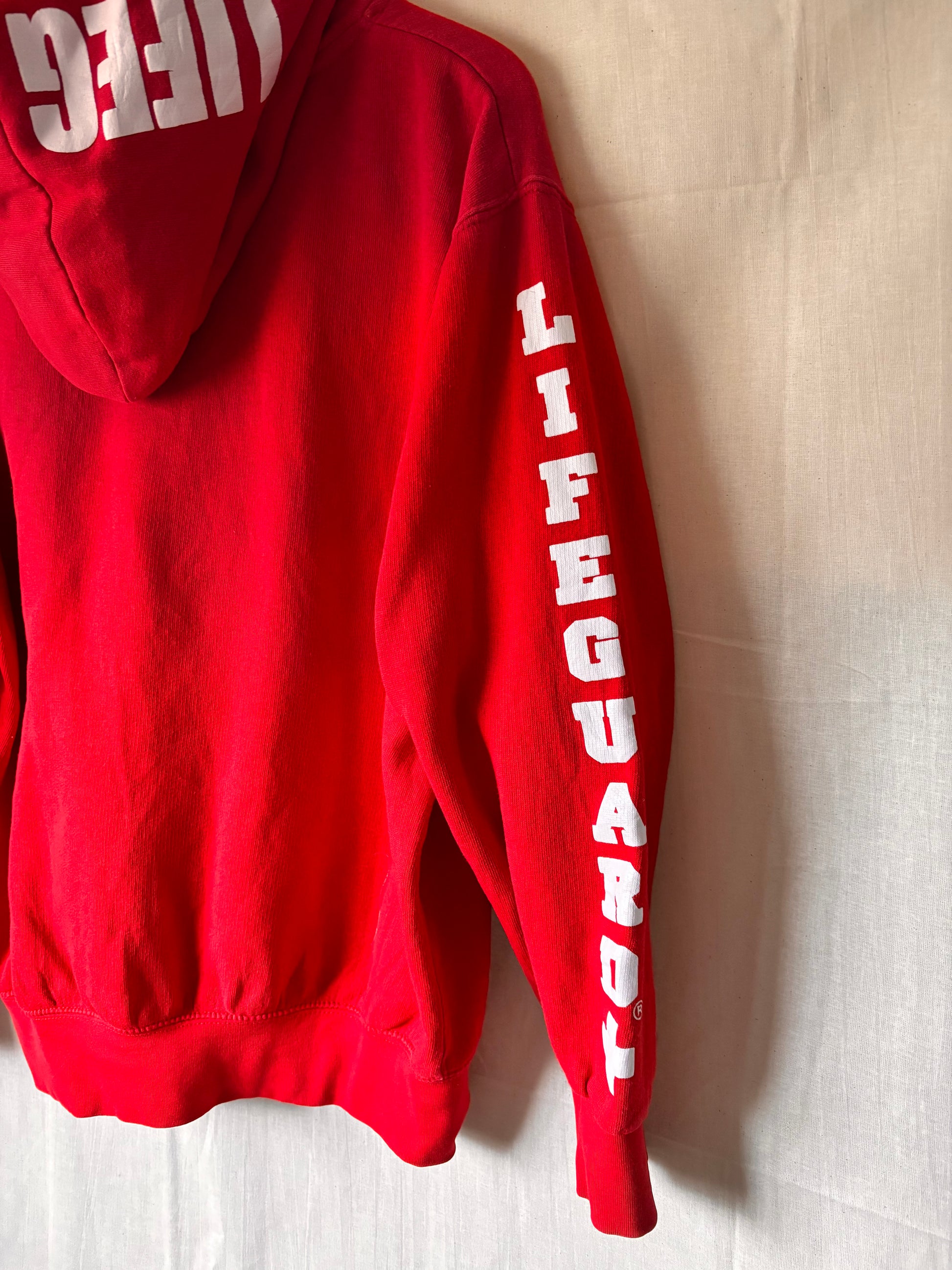 Bold, bright, and effortlessly cool — this vintage-style Lifeguard® hoodie is the perfect throw-on for laidback days and off-duty vibes. Originally sold as official Outer Banks merch, it’s a classic red hoodie with bold white lettering, kangaroo pocket, and drawstring hood.