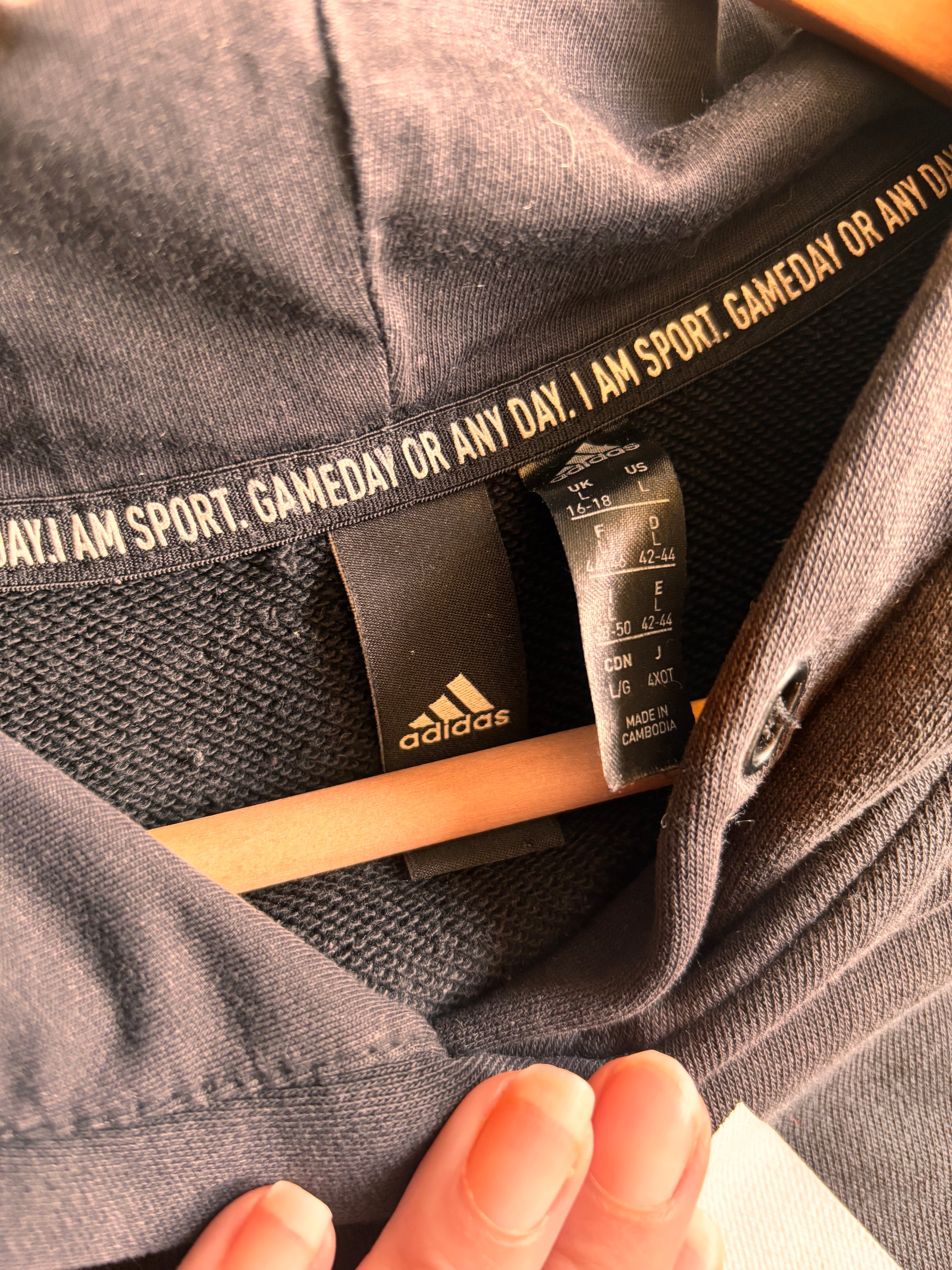 Upcycled Adidas Hoodie – One-of-a-Kind Reverse Applique | Size Large