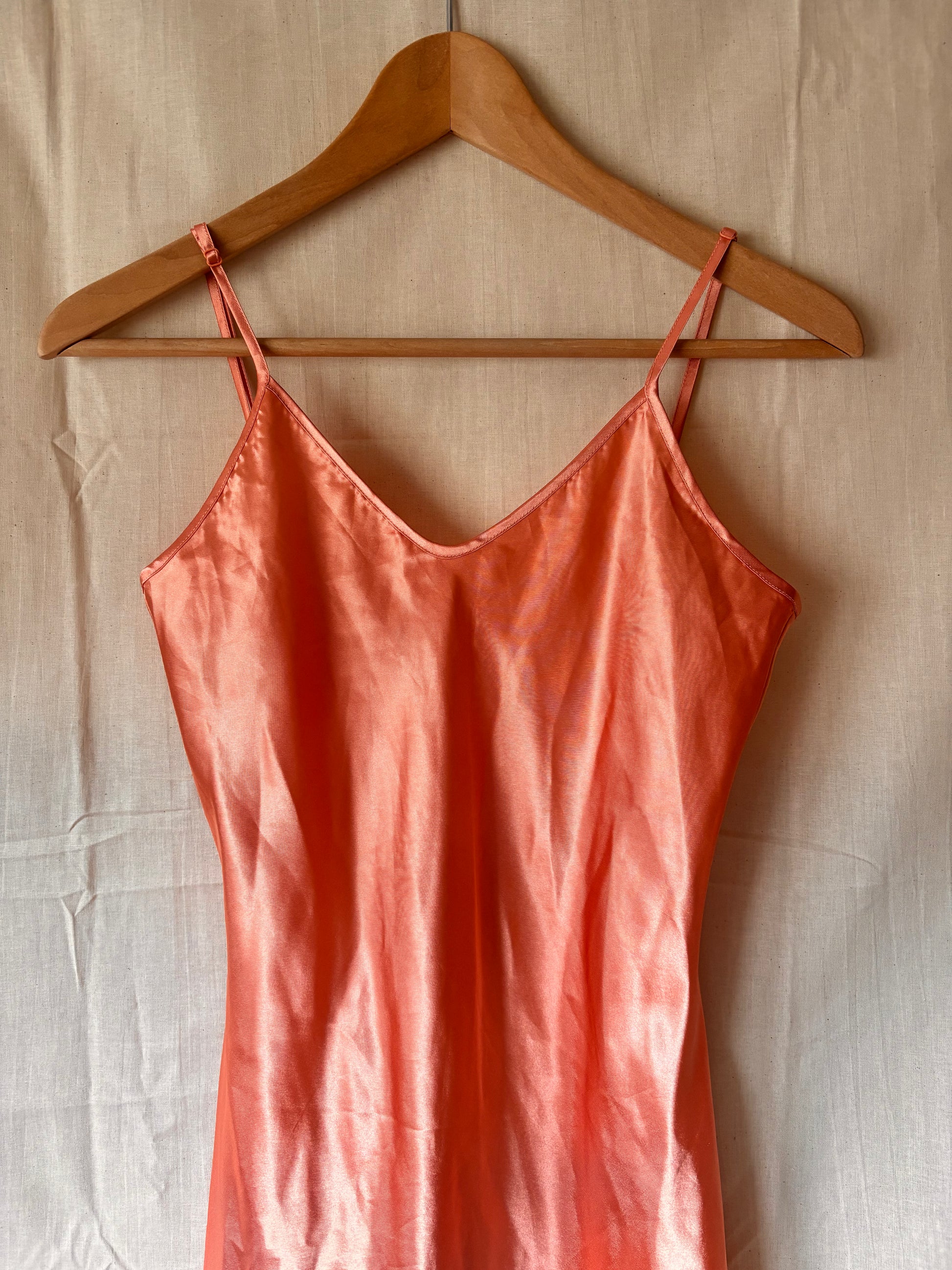 Coral Satin Slip Dress – 90s Y2K Minimalist Style